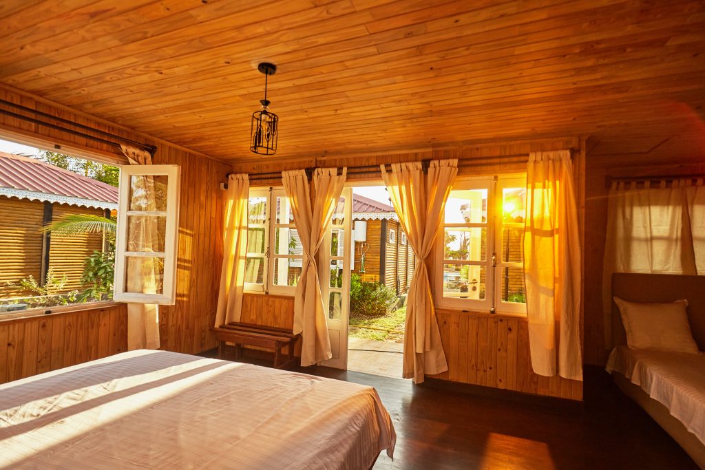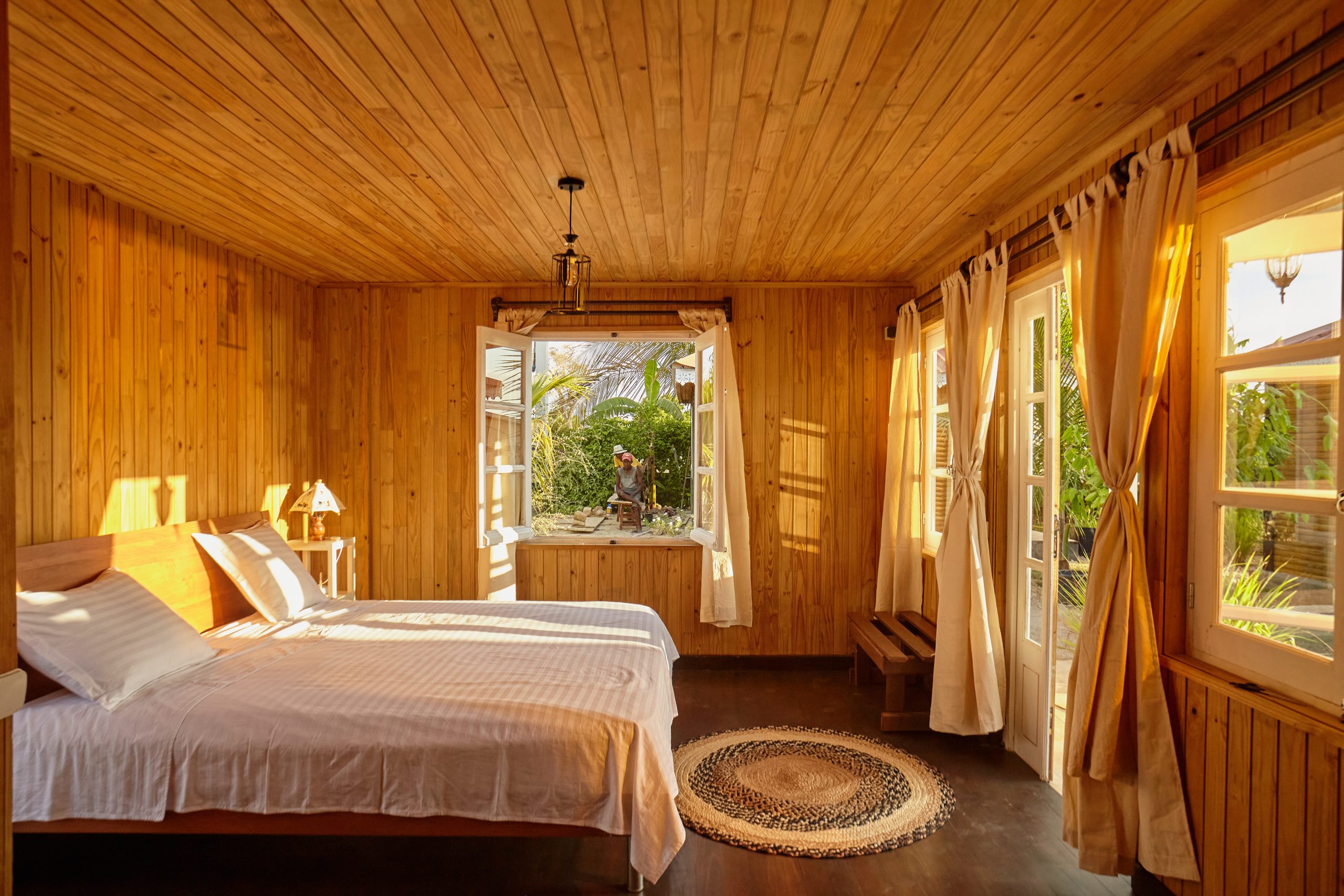 La vue sur le jardin crée une ambiance paisible, parfaite pour des moments de détente et de complicité en famille. Vous bénéficiez en outre d’une connexion Wi-Fi sans interruption par Starlink pour rester connecté à vos activités. Vous bénéficiez également d’eau chaude, des sanitaires privés, et d’un accès complet aux diverses activités proposées par l’hôtel.